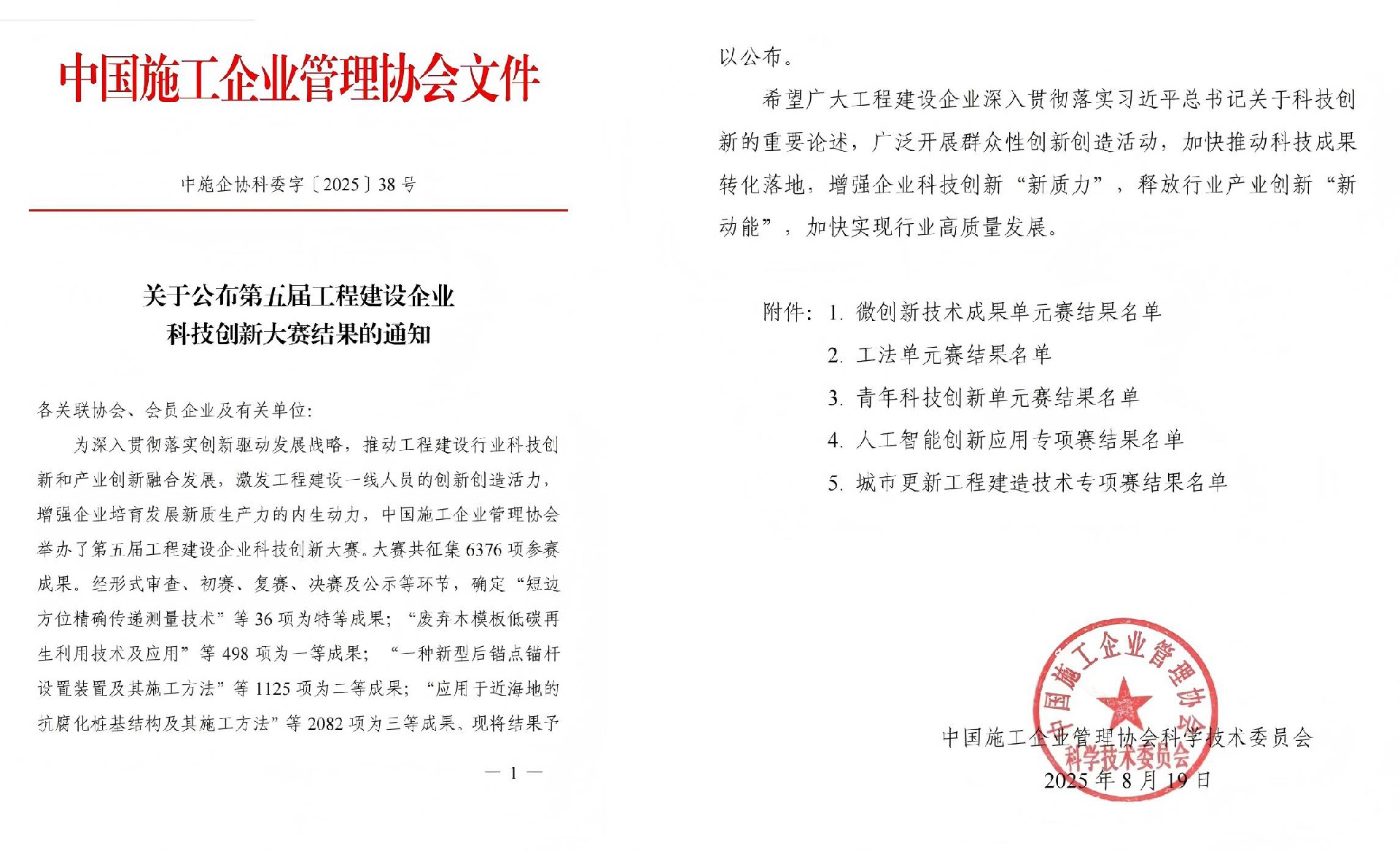 近日,第五屆全國(guó)工程建設(shè)企業(yè)科技創(chuàng)新大賽獲獎(jiǎng)結(jié)果出爐,集團(tuán)在“青年科技創(chuàng)新單元賽”中斬獲一等成果,在“工法單元賽”中獲得二等工法2項(xiàng), 三等工法1項(xiàng)?!ぁぁ?/p>