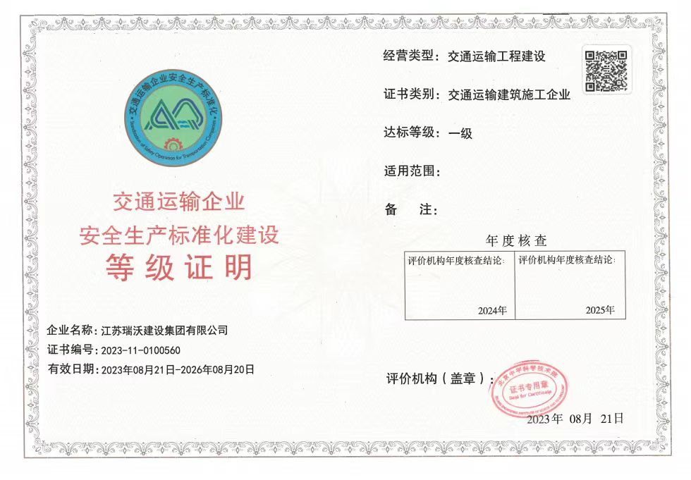 江蘇瑞沃建設(shè)集團(tuán)有限公司成立于2007年,是一家以市政、交通工程建設(shè)為主導(dǎo),集房屋建筑、交通安全設(shè)施、城市道路照明工程、電力工程、隧道工程、航道工程及投融資為一體的綜合性企業(yè)。企業(yè)注冊(cè)資本60000萬(wàn)元,現(xiàn)有各類(lèi)技術(shù)人員580人,其中中、高級(jí)以上人員498人,注冊(cè)類(lèi)人員268人,一、二級(jí)建造師166人。公司榮獲“江蘇省建筑業(yè)優(yōu)秀企業(yè)”、“江蘇省五一勞動(dòng)獎(jiǎng)狀”,連續(xù)多年被評(píng)為“揚(yáng)州市先進(jìn)企業(yè)”、“江蘇省建筑業(yè)百?gòu)?qiáng)企業(yè)”,連續(xù)八年蟬聯(lián)百?gòu)?qiáng)企業(yè)基礎(chǔ)設(shè)施類(lèi)第一名。